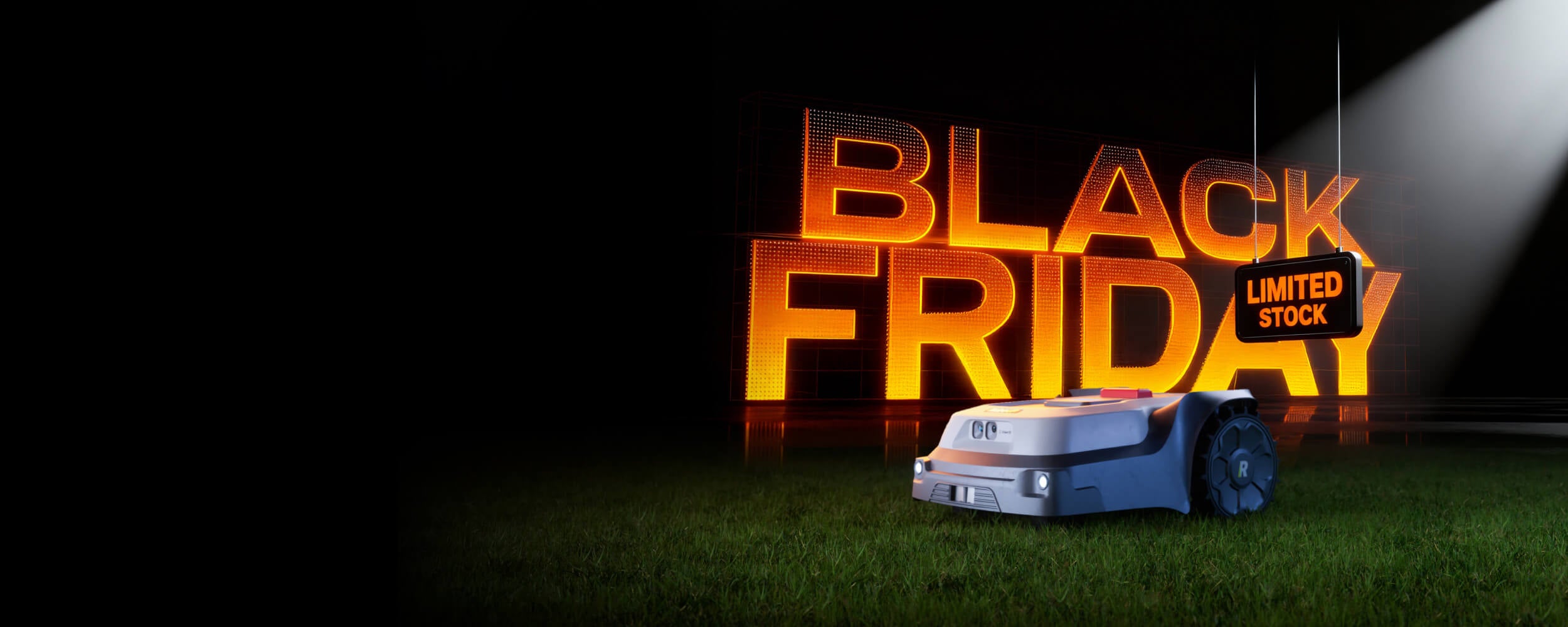 Ce sera la plus grande vente de l'année — le 16 novembre, vous pourrez obtenir le T1200 Pro avec une réduction de 42 %, et recevoir en plus un garage pour robot tondeuse RoboUP d'une valeur de 179 $ — soit une économie totale de plus de 830 $ !