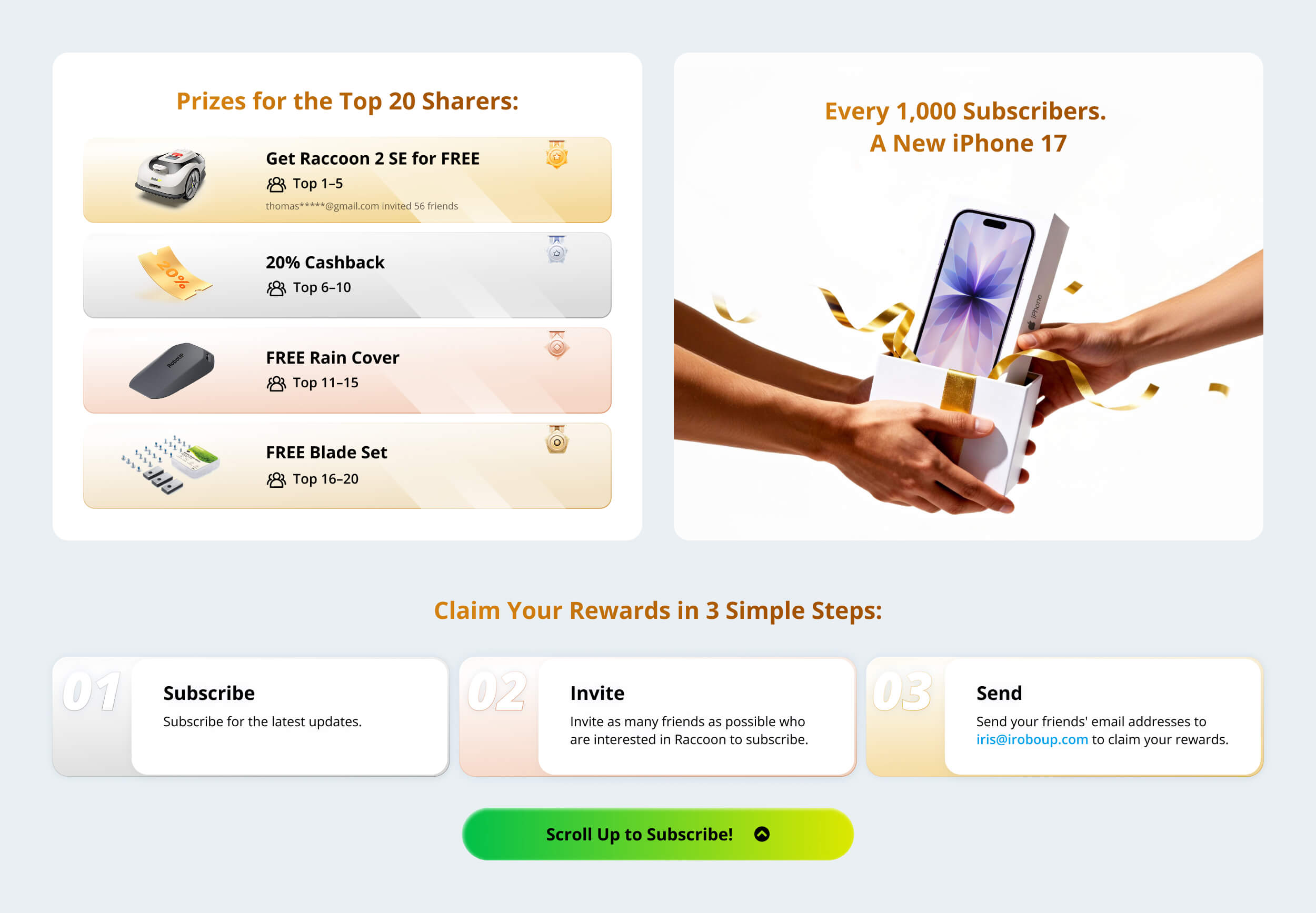 Livraison prioritaire, soyez parmi les premiers à la recevoir : recevez votre tondeuse avant les contributeurs standards, à partir de février 2026.